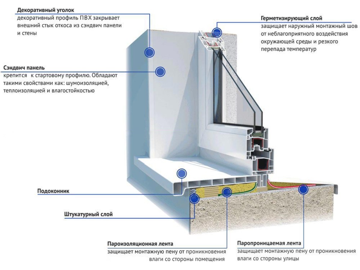Подоконник влияет на вентиляцию, теплоотдачу и герметичность нижней части узла.