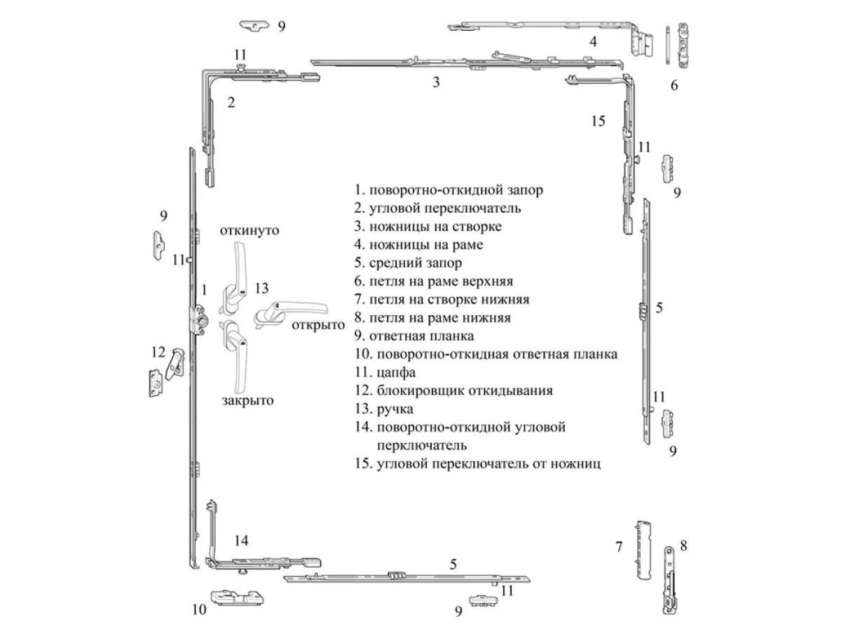 Фурнитура работает в комплексе с подоконником, откосами и монтажными материалами, формируя единый оконный узел.